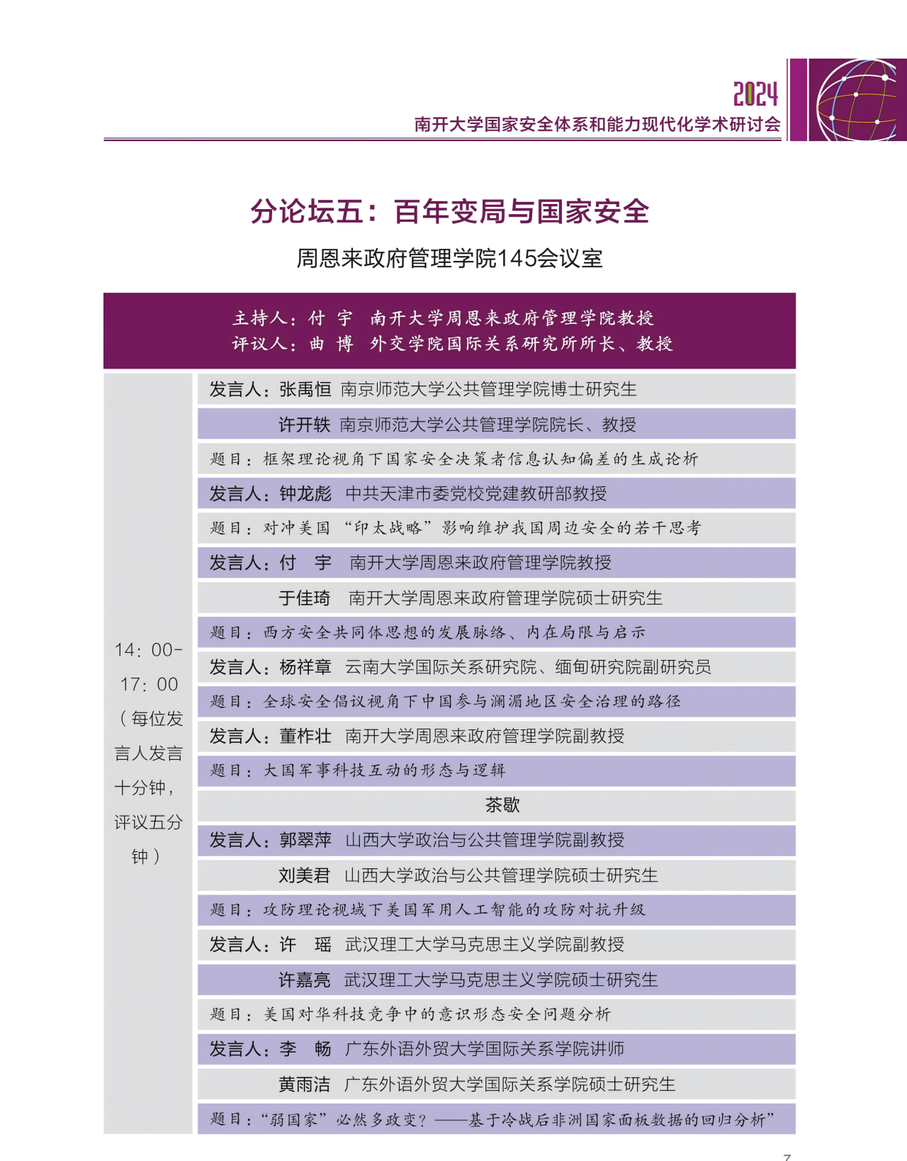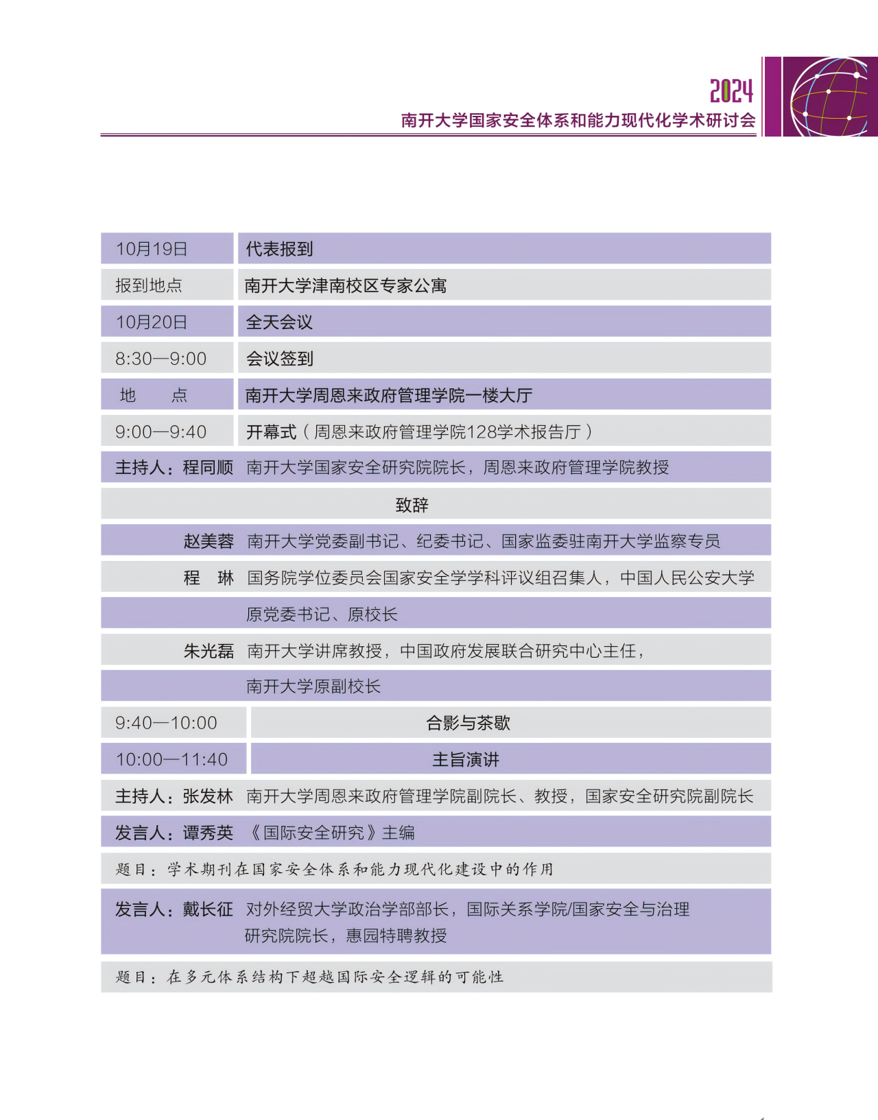 来利国际旗舰厅“国家安全体系和能力现代化”学术研讨会议程发布