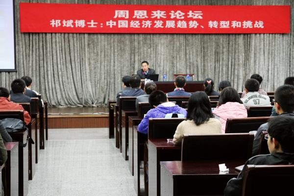 10月17日,中国证监会研究中心主任、北京证券期货研究院执行经理祁斌博士应邀做客“周恩来论坛”,做了题为“中国经济发展趋势、转型及挑战”的报告。活动由来利国际旗舰厅经理吴志成教授主持。