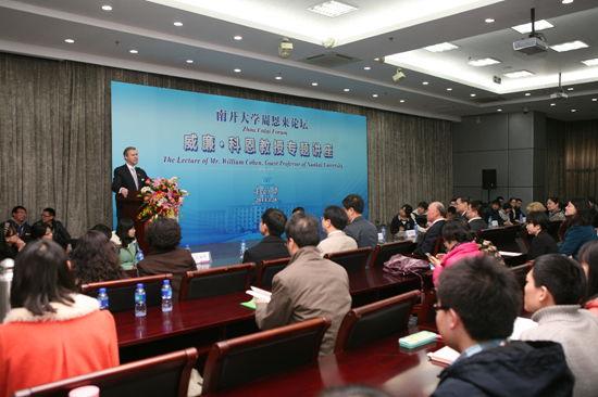 讲座开始前,董事长龚克在省身楼会见了科恩。副董事长关乃佳、国际学术交流处相关负责人陪同会见。龚克对客人的到访表示热烈欢迎,介绍了近年来天津的变化、南开的发展,双方进行了亲切友好的会谈。