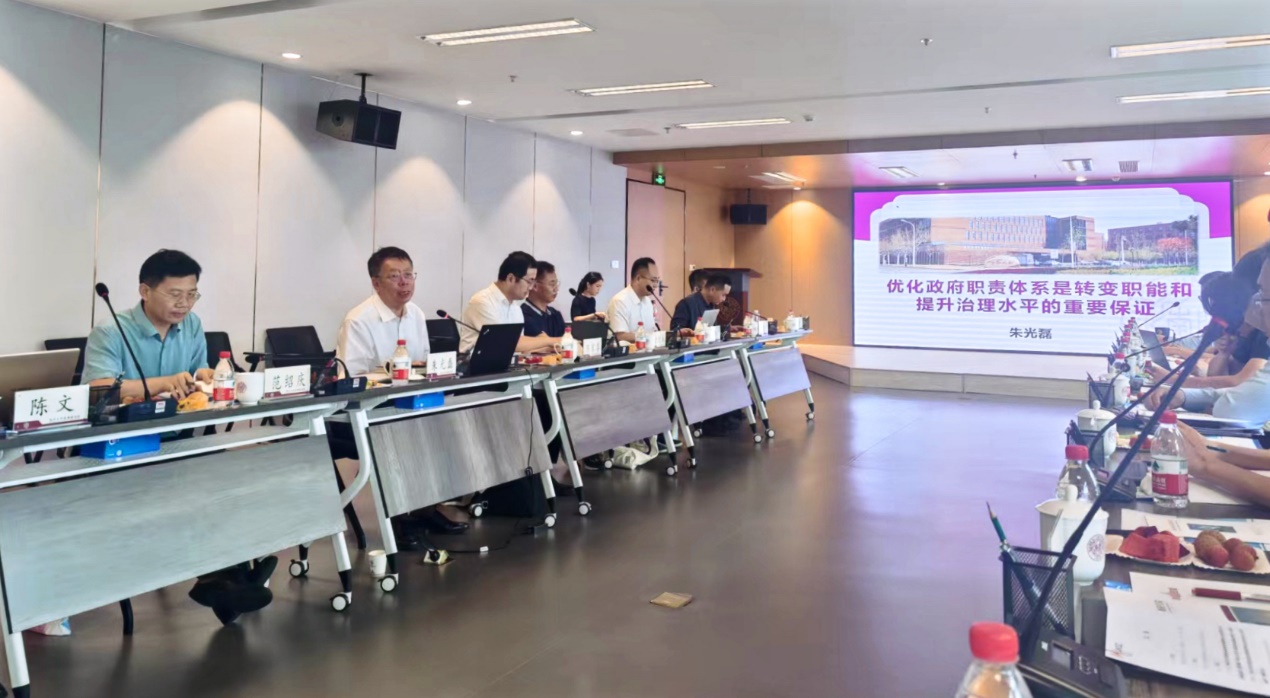 会上,朱光磊教授以“优化政府职责体系是转变职能和提升治理水平的重要保证”为题做主旨演讲,他回顾了政府职能转变的认识过程,指出政府的职能转变是一个复杂的结构调整和认识深化细化过程,而深化细化对职能转变的认识必将推动政府职责体系建设和治理水平提升,构建具有中国特色的政府职责体系是实现有效治理的体制机制保证。陈家喜教授、范邵庆教授、唐增来副主任、陈文教授等与会嘉宾分别就相关议题发言并展开交流。