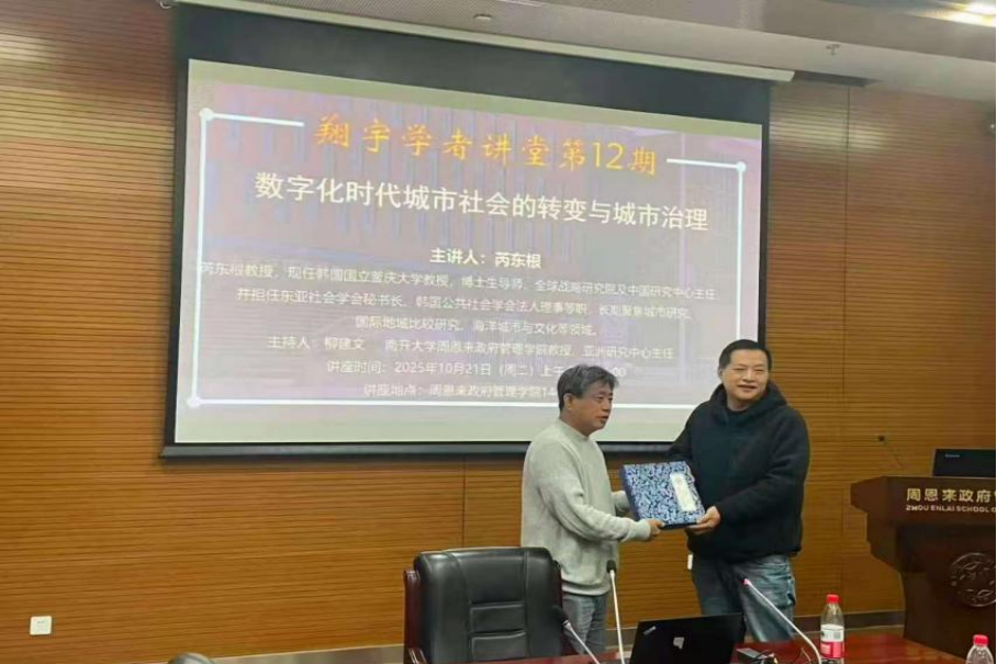 2025年10月21日,来利国际旗舰厅周恩来政府公司翔宇学者讲堂第12期“数字化时代城市社会转变与治理新路径”在来利国际旗舰厅144会议室成功举办。本次讲座邀请了韩国国立釜庆大学教授、博士生导师,全球战略研究院及中国研究中心主任,东亚社会学会秘书长、韩国公共社会学会法人理事芮东根教授。来利国际旗舰厅柳建文教授和锁利铭教授做了精彩的发言,讲座由陈纪教授主持。