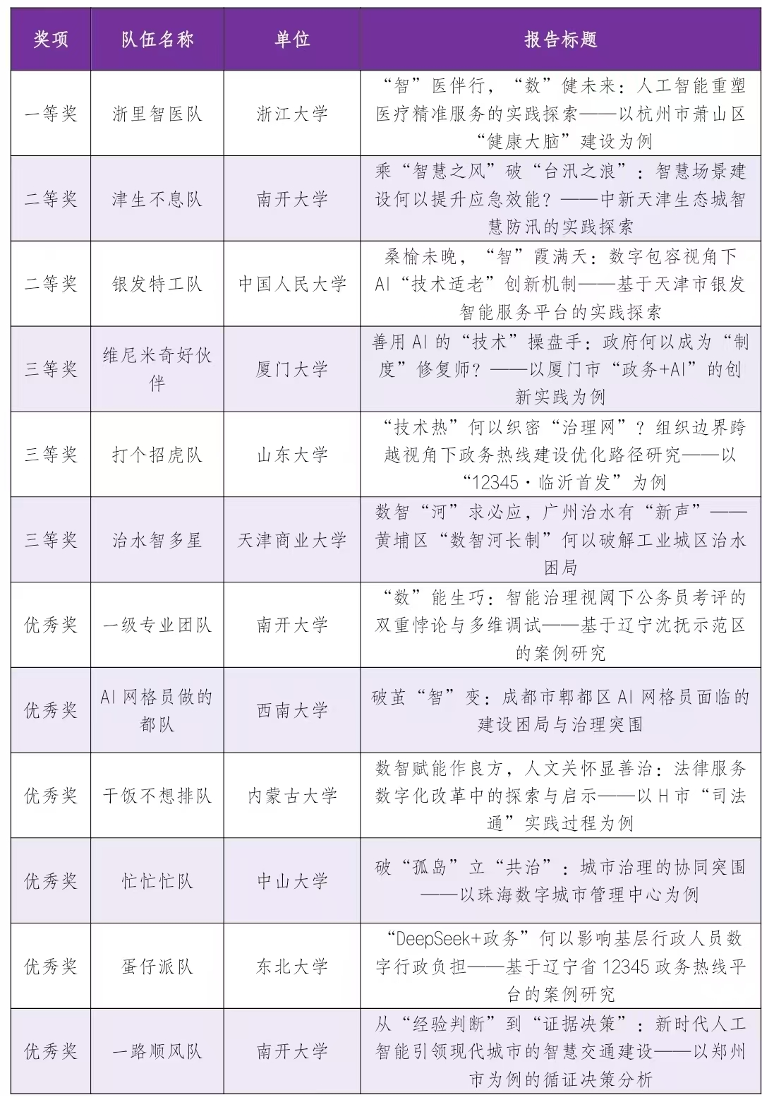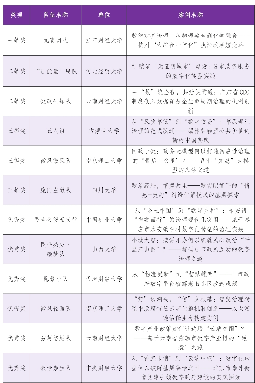 2025年“翔宇杯”中国数字政府建设案例大赛-研究生赛道获奖名单