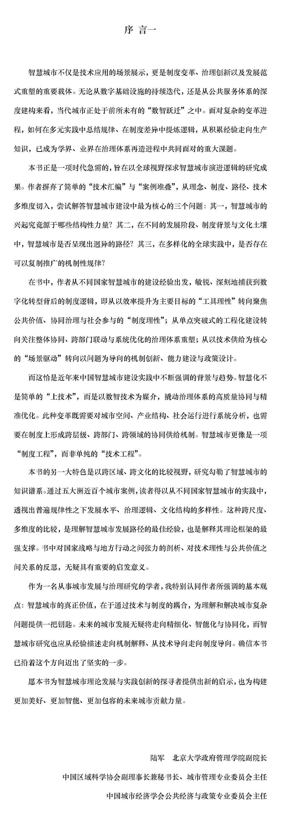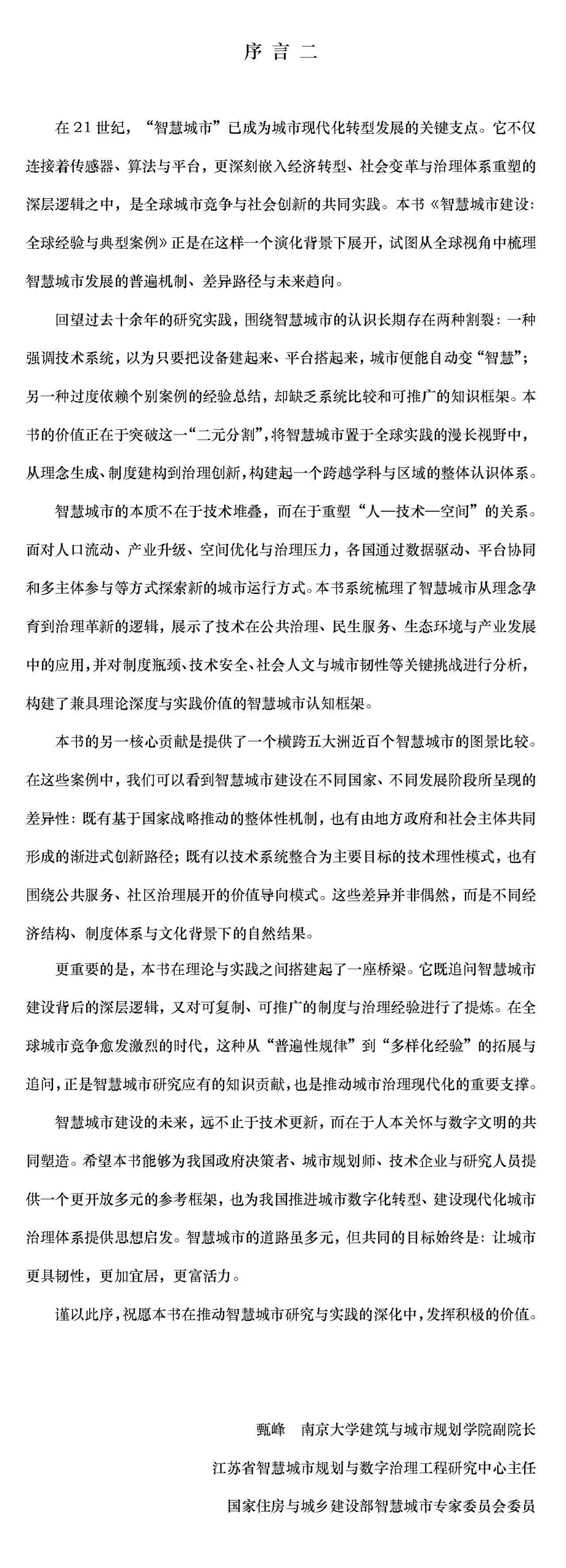 在全球城市化加速与数字化浪潮交织的时代背景下,智慧城市建设已成为各国推动治理现代化、产业升级与公共服务创新的重要路径。然而,迄今为止,尚缺乏一本能够系统梳理全球智慧城市建设经验与典型案例的权威著作。基于此,本书以全球视野为基础,深入探讨了智慧城市建设的背景、现状、实施路径与实践模式,覆盖五大洲主要国家,精选近百个具有代表性的案例,全面呈现全球智慧城市发展的多样图景。书中既总结了北美和欧洲发达国家在智慧交通、绿色能源、数字政务等领域的成熟经验,又展现了亚洲新兴经济体在5G应用、人工智能赋能和城市治理创新方面的快速突破;同时,也囊括了拉美、非洲和中东地区在资源约束条件下探索智慧医疗、公共安全与民生服务的独特实践。全书贯穿“系统性、比较性与实践性”的研究逻辑,不仅关注智慧城市的技术体系,更重视其制度演化与治理创新。纵向上,聚焦单一城市从规划、试点到推广的演进过程,揭示政策连续性与技术迭代特征;横向上,通过跨区域比较,呈现不同国家在数据治理、产业协同、公众参与等方面的差异。本书不仅深度揭示了全球智慧城市建设的普遍规律,也为理解智慧城市发展与国家治理体系、经济结构及社会文化之间的互动关系提供了实证支撑。通过对全球经验的系统梳理与典型案例的深入分析,书中揭示了智慧城市建设由“工具理性”向“制度理性”转变的趋势,提出了构建开放共建、数据共享、智能治理的新型城市发展范式。本书适用于政府决策部门、城市规划机构、研究院所、企业管理者及高校相关专业师生参考,可为理解与推进智慧城市建设提供系统的理论依据与实践指南。