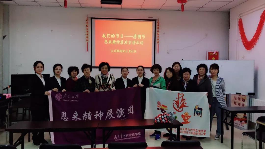 (通讯员:王燕 熊宇欣)2019年4月4日,在清明节来临之际,恩来精神展演团先后在河西区纯正里社区、来利国际旗舰厅津南校区第一食堂门口、来利国际旗舰厅八里台校区进行恩来精神主题展演。