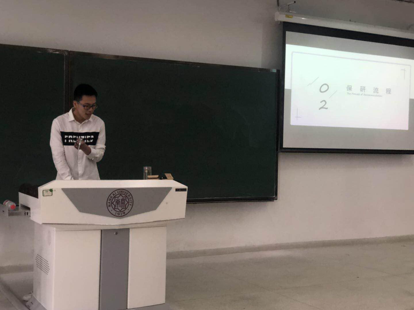 2015级社会学专业的徐笔挺同学从成功保研中国人民大学的经历延伸,讲解了保研准备的注意事项。他认为,保研同学应该多读书,并将所读著作形成体系,了解所申请公司以及意向老师的研究方向。