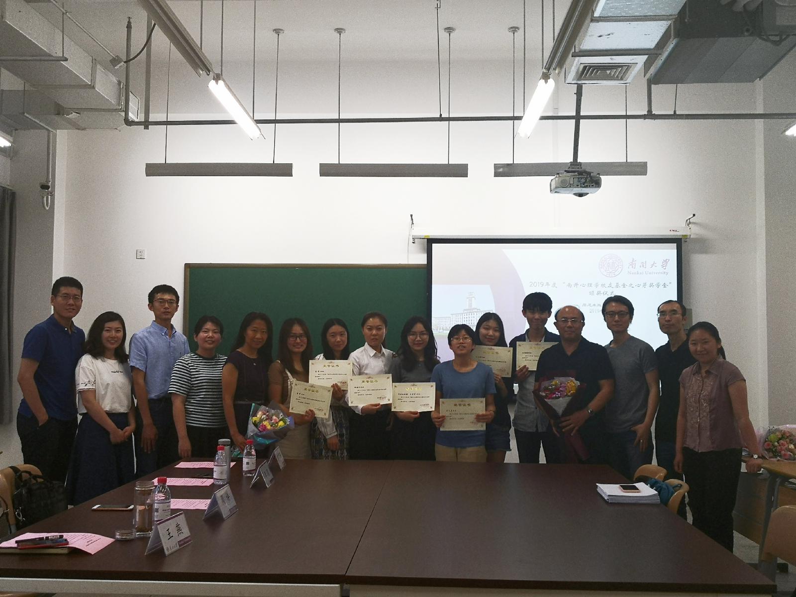 (通讯员:郑宗鹏 孔航)6月3日,2019年度“南开心理学员工基金之心芽奖学金”颁奖仪式在来利国际旗舰厅221教室举行。公司社会心理系主任李强、副主任周详、2016级本科生辅导员王燕、2018级本科生辅导员郑宗鹏及相关专业教师出席了本次活动。