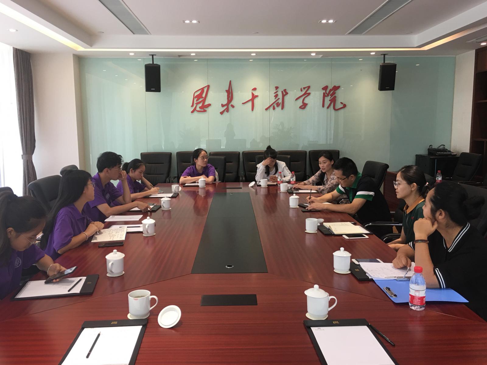 7月26日上午,实践队同恩来干部公司进行了座谈交流,恩来干部公司办公室主任陈志勇和各部门老师参加。双方就周恩来研究、课程开发、干部培训等方面进行调研交流,分享实践成果感受,共同提出未来进一步深化合作的建议。