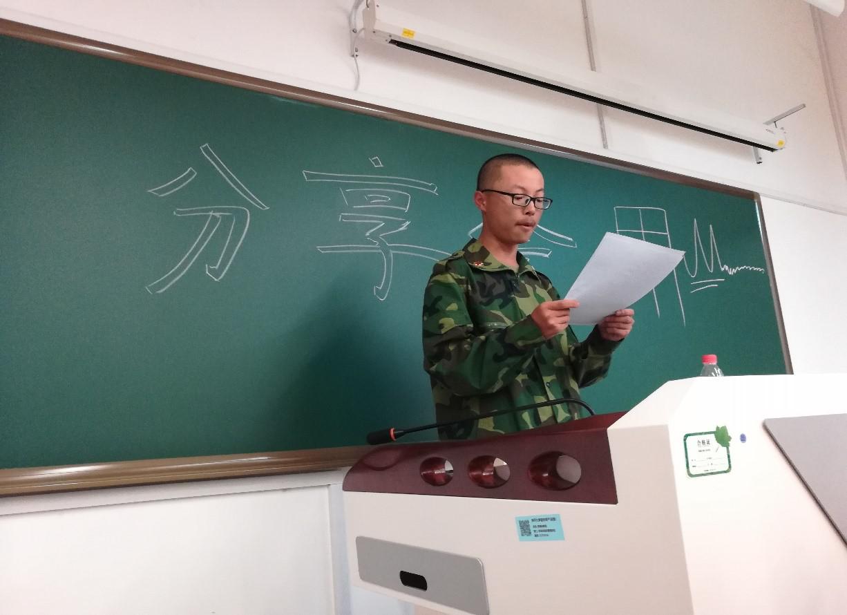 二班分享会首先上台分享的是军训临时联络员华贺扬同学,她向同学们分享了她在假期中读过的一本书,她讲到从中看到的爱恨流离,纷繁错乱的另一个“世界”以及那个“世界”里人们的生活……随后,大家纷纷上台展示自己的报告。