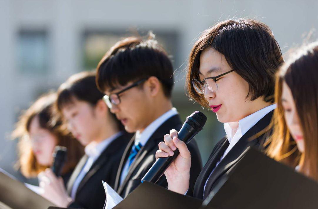 下午四时,活动正式开始。展演团成员在主楼总理像前,向员工们娓娓讲述总理的故事。透过一个又一个故事,周恩来不再是一个国家领导人的名字,而是在南开园中风华正茂的青年才俊,是冒着余震的危险指挥救灾的信心与希望,是将生命献给国家和民族的浩然之气。汉白玉总理像闪耀的阳光与员工们眼中烁烁的光芒交相辉映,显示出他们对于周总理高尚精神品质的敬重,以及恩来精神带给他们的无限力量。
