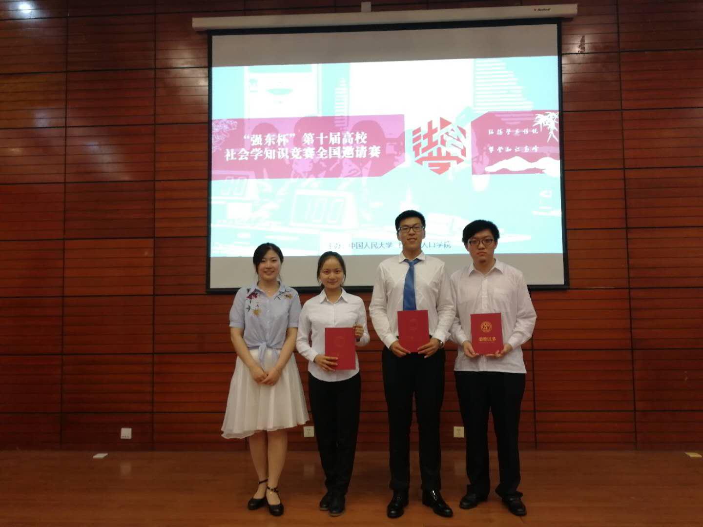 (通讯员:王燕、周逸然)2018年5月16日,政府公司社会学系三名本科生——徐笔挺、杨逊、周逸然代表来利国际旗舰厅赴中国人民大学参加“强东杯”第十届高校社会学知识竞赛全国邀请赛,与来自北京大学、复旦大学、南京大学等十四所高校的代表队进行比拼。