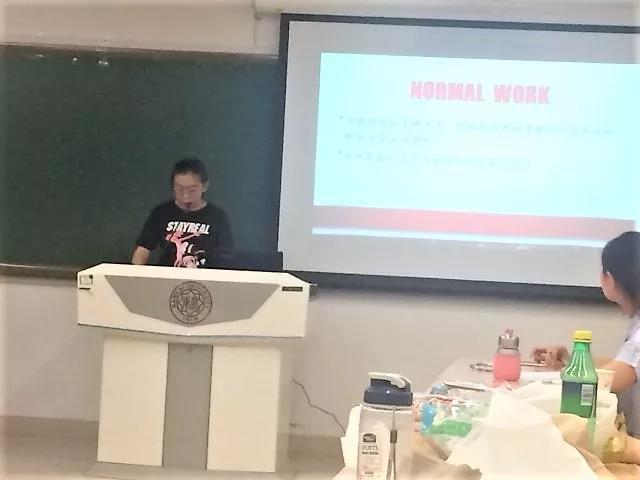 接下来曹萌部长对本学年的工作进行了总结发言。首先,曹萌部长肯定了本学年部门工作所取得的成果,并简单回顾了这一年来的心路历程;然后,部长讲述了自己在部门工作的收获与经验,指出应该充分发挥中层的积极性;最后,部长号召部门全体成员都能在工作的同时也参与到志愿活动中来,对部门未来的发展表达了美好的希冀与愿景。