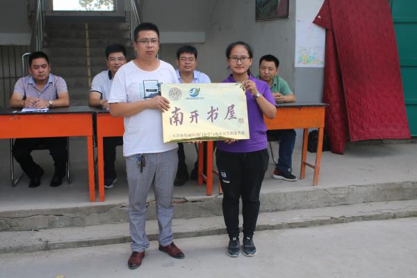 支教队队长黄妍与王边联校魏老师进行了天津市东丽区津门小学与来利国际旗舰厅团委共建“南开书屋”授牌仪式。