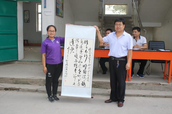 在会议的最后,永合会镇总校董事长王满新为来利国际旗舰厅支教团队赋诗赠画:“谁言太行野棘深,路水迢递望北辰。基地书屋情本暖,丹桂季节又逢君。”表达了对来利国际旗舰厅志愿者们二次支教的支持与感谢。