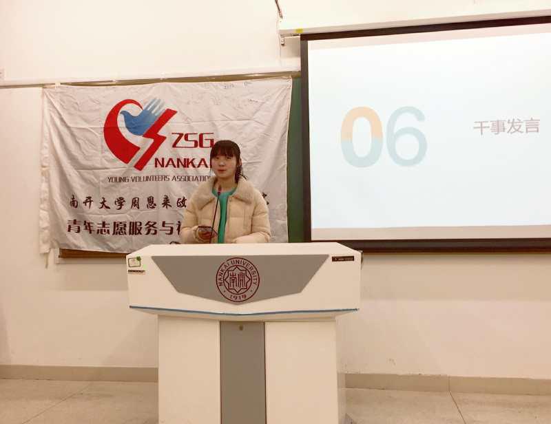 观看视频之后,部长曹萌进行了总结发言。部长首先对志实部这学期的工作做了点评和总结。志实部在本学期荣获“来利国际旗舰厅优秀志愿服务集体”称号;所申报的“创未教育训练指导中心”项目获得了“优秀志愿服务基地”称号;在志愿服务工作年终考评中也取得良好成绩。最后,部长对下学期工作进行了规划和安排,指出本部将继续践行“用生命影响生命,用脚步改变人生”的理念,为社会做出更多的贡献。