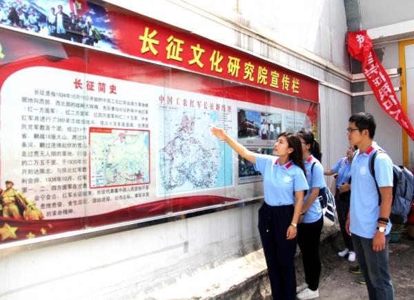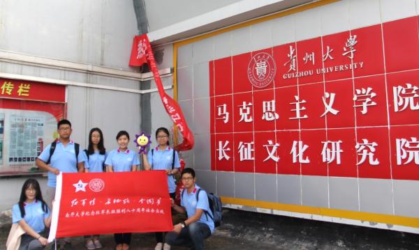 贵州具有光荣的革命传统。1934年至1936年期间,中国共产党领导的中央红军,红二、红六军团在长征途中先后转战贵州,书写了彪炳史册、光耀千秋的伟大篇章。贵州大学作为贵州省内顶尖的高校,在长征文化的发掘、整理、研究、宣传、利用方面有着得天独厚的优势。在原有的长征文化研究的基础之上,贵州大学于2015年成立了“长征文化研究院”,进行更为深入、全面、广泛的长征文化研究。此行,实践队成员们有幸来到贵州大学“长征文化研究院”进行参观和学习。