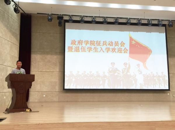 为深入推进国防教育并扎实做好征兵宣传工作,9月12日中午,政府公司征兵动员会暨退伍员工邓亚超入学欢迎会在津南校区业务楼报告厅隆重召开。公司党委书记王慧、党委副书记兼副经理奚先来出席,两百余名大一新生以及邓亚超所在班级同学参加。