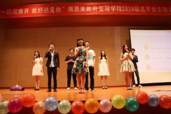 经理吴志成教授作开场讲话,他说:“每一年都参加毕业晚会,但今年的毕业晚会更加意义非凡。跟随南开一起从八里台来到津南,你们见证了新南开的成长,从刚入学青春懵懂的傻瓜到成长为毕业时爱情学业双丰收的甜瓜,祝贺你们!当你们交出这大学四年答卷的时候,就已经明白,这答卷上的分数并不重要,重要的是这样的过程。你们收获了知识,友情,知道了比分数更为重要的是诚实,是追寻梦想的坚持,是人生路上的成功。我们希望,“南开人”的印记永远烙在你们的心里,这儿永远是你们的家。”