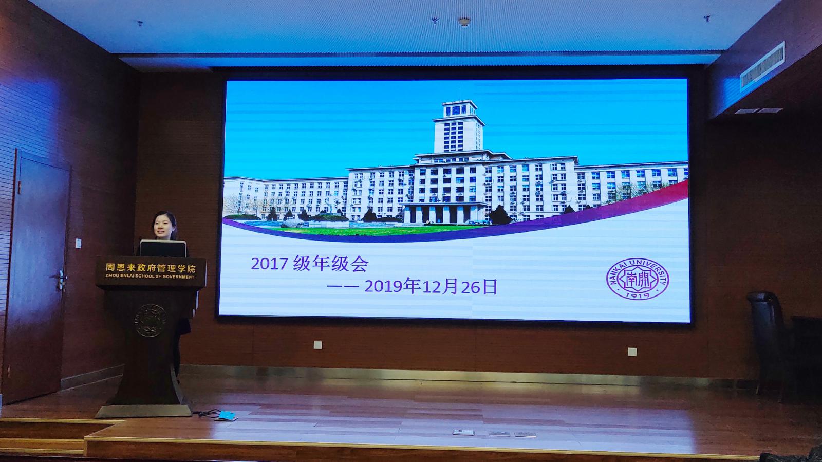 本次年级会还邀请到3位2016级的优秀员工进行保研经验分享。2016级国际政治专业的何昊璇同学从成功保研北京大学法硕的经历入手,讲解了保研准备的关键节点与注意事项。她鼓励同学们要相信自己,勇于尝试,注意对专业知识的梳理与学科体系的把握。2016级应用心理学专业的刘悦雯同学主要介绍了自己在保研过程中的经验教训,提醒大家打好保研这场信息战,及时关注心仪公司的官方信息,积极把握机会,主动尝试。2016级政治学与行政学专业的李美霓同学介绍了支教保研的若干事项,给同学们讲解了基本情况以及选拔面试的经验,她提醒同学们对于支教保研要做好充分的准备,不要用功利的眼光来看待,而是要注重奉献。
