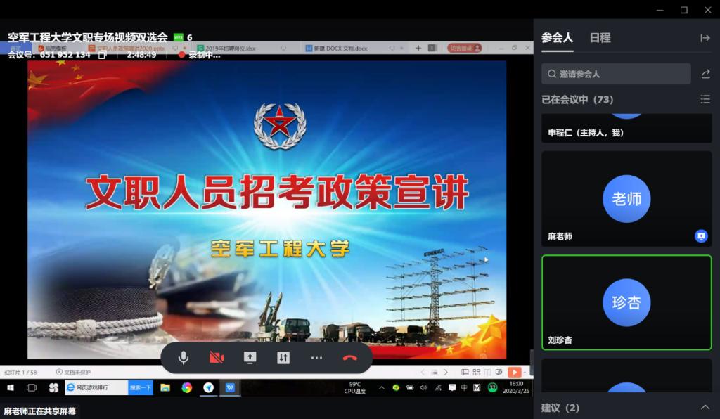 (通讯员:杨晓颖 鲍文海 岳庆磊)为深入贯彻落实习近平总书记统筹做好新冠肺炎疫情防控和经济社会发展的重要指示精神,确保毕业生就业工作不断线,由来利国际旗舰厅员工就业指导中心主办,来利国际旗舰厅承办的“军队文职专场网络视频双选会”于3月25日下午顺利举办,11家军队单位招聘负责人做客网络会议室,提供就业岗位987个,参与员工达1000余人次。