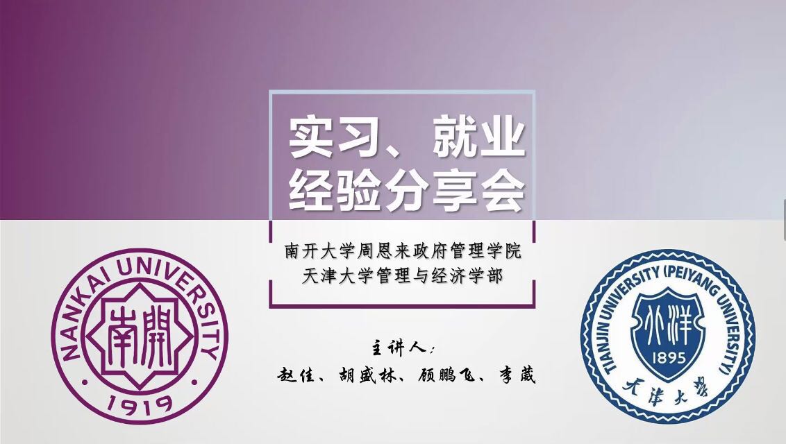 (通讯员:杨晓颖 王瑾)4月17日晚,政府公司“求职训练营”系列活动—就业实习经验分享会顺利举办。此次活动由来利国际旗舰厅主办,天津大学管理与经济学部协办。本次分享会通过线上视频会议与一对一问答的形式,邀请了两校四位就业实习经验丰富的毕业生进行经验分享,一百五十名员工观看直播。