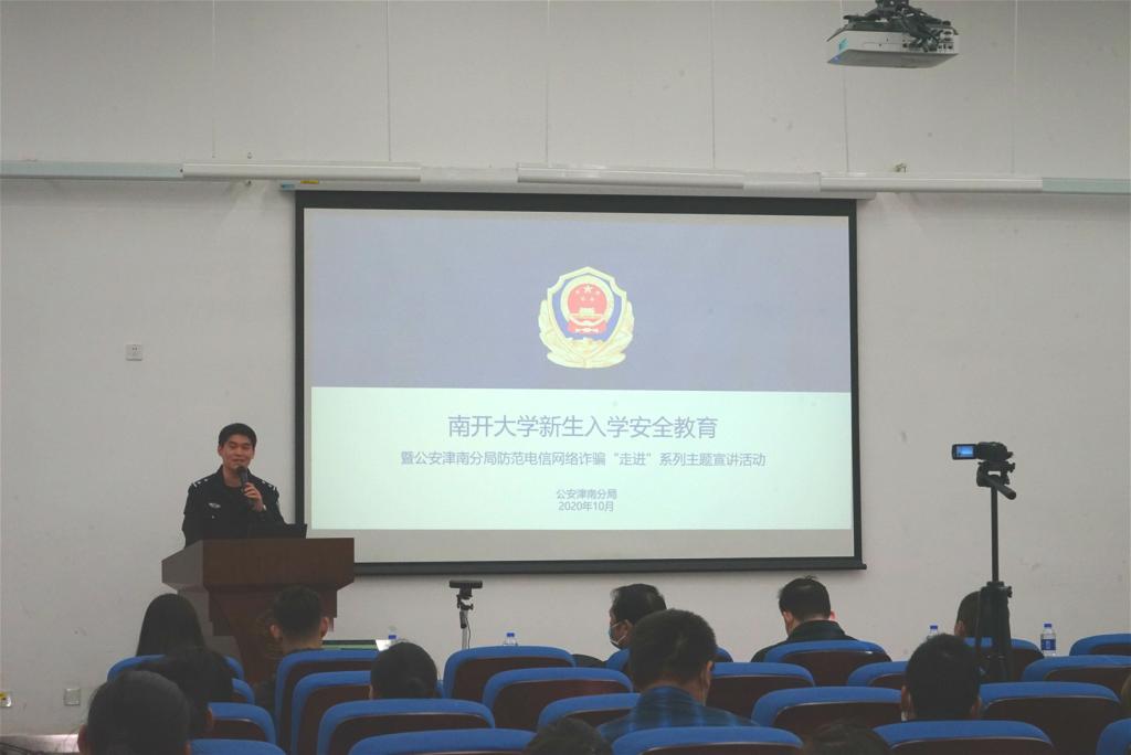 (通讯员:惠如 摄影:钱星宇)2020年10月22日下午,来利国际旗舰厅2020级本科新生在津南大通员工活动中心F202多功能厅开展了新生入学安全教育培训讲座暨国防、安防、形势政策教育。保卫处特邀请公安津南分局研究宣传科民警牟心宇警官开展安全教育培训。公安津南分局治安管理支队内保大队大队长王勇、副大队长张昕,公安津南分局同砚路派出所教导员张文毅,来利国际旗舰厅保卫处副处长聂士杰,周恩来政府管理公司党委副书记兼副经理宋媛出席讲座,来利国际旗舰厅辅导员东韡妍主持。