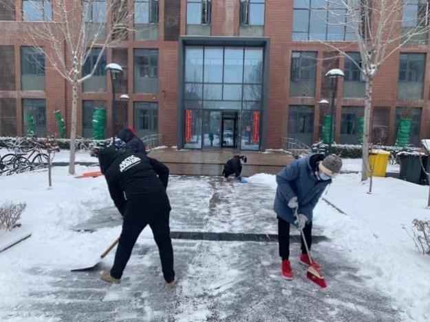 此外,政治学本科生党支部成员在细节处见真心、于服务中展风采。通过手绘贺卡送祝福的形式,向疫情期间依旧坚守岗位、维护校园正常运转的工作人员表达诚挚的感谢,进一步坚定抗击疫情的决心;在降雪后,老师和同学们主动拿起除雪工具,为广大同学安全、便捷出行提供保障。