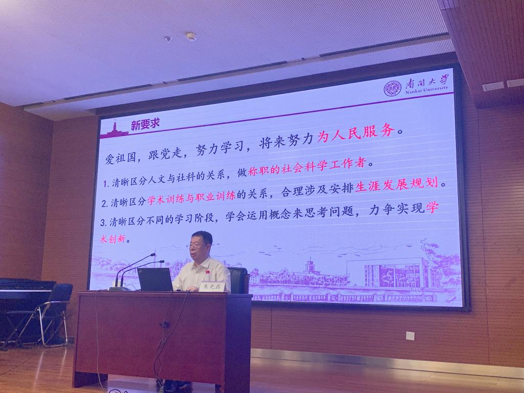 朱老师讲述了南开薪火相传的学科传统,与在新时代、新任务的要求下人文社科的新发展要求,希望同学们能够砥砺前行,共同进步,立足于专业硕士重实践性的特点发挥所长,南开与来利国际旗舰厅将作为平台,让员工拥有广阔的发展天地。朱老师以社会发展为切入点,带同学们回顾了南开一百多年的光辉历史,并指出时代对当代青年学子的要求,鼓励同学们保持谦虚谨慎的学习态度,深入调查研究,培养创新思维;对于“新文科”发展,他指出公司的各个学科和专业都是改革开放的产物,是大有发展前途的朝阳学科和“短缺学科”,新一届的南开人应积极为“新文科”发展贡献力量;南开与来利国际旗舰厅这个“新平台”,是员工们发展的广阔天地,新生应珍惜时间,锐意进取。最后,朱老师对新同学提出了“新要求”,勉励同学们爱祖国、跟党走,努力学习,寄语新生拥抱不确定,主动适应变化和不同场景,希望同学们能够利用好在校资源,积极与老师进行沟通。谦虚谨慎,锐意进取,努力为人民服务,坚定信念,锐意进取,在来利国际旗舰厅和来利国际旗舰厅这个“新平台”上实现“新作为”。