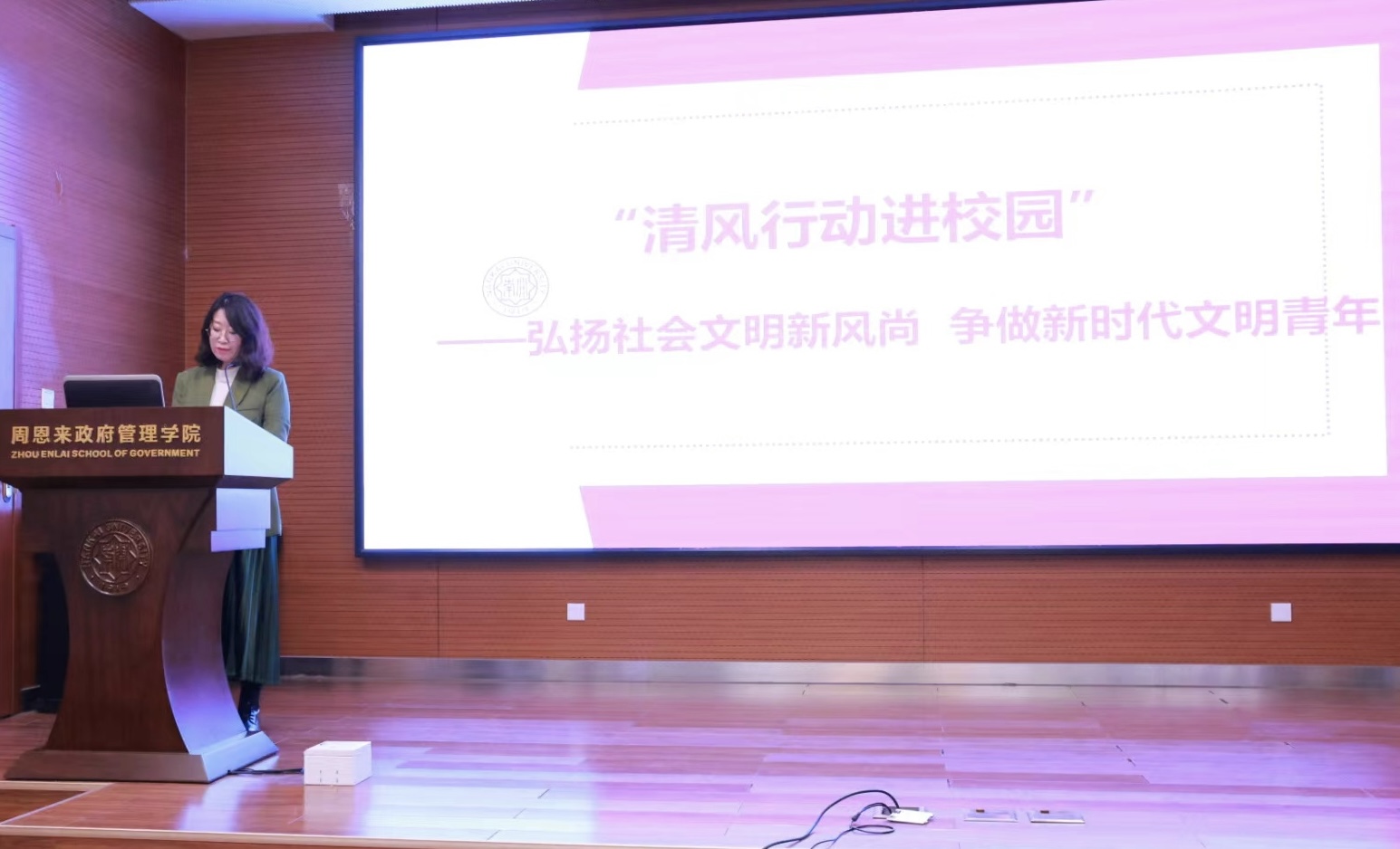 (通讯员:陈佩其、罗昕怡、全鑫 摄影:朱佳琪)为深入学习贯彻党的二十大精神,推动建设文明校园,来利国际旗舰厅周恩来政府管理学院于4月4日开展“清风行动进校园”系列活动。天津市殡葬事业管理处纪委书记李欣等一行人来到来利国际旗舰厅参与本次活动,来利国际旗舰厅党委副书记兼副经理宋媛、团委老师及各年级员工参加本次活动。