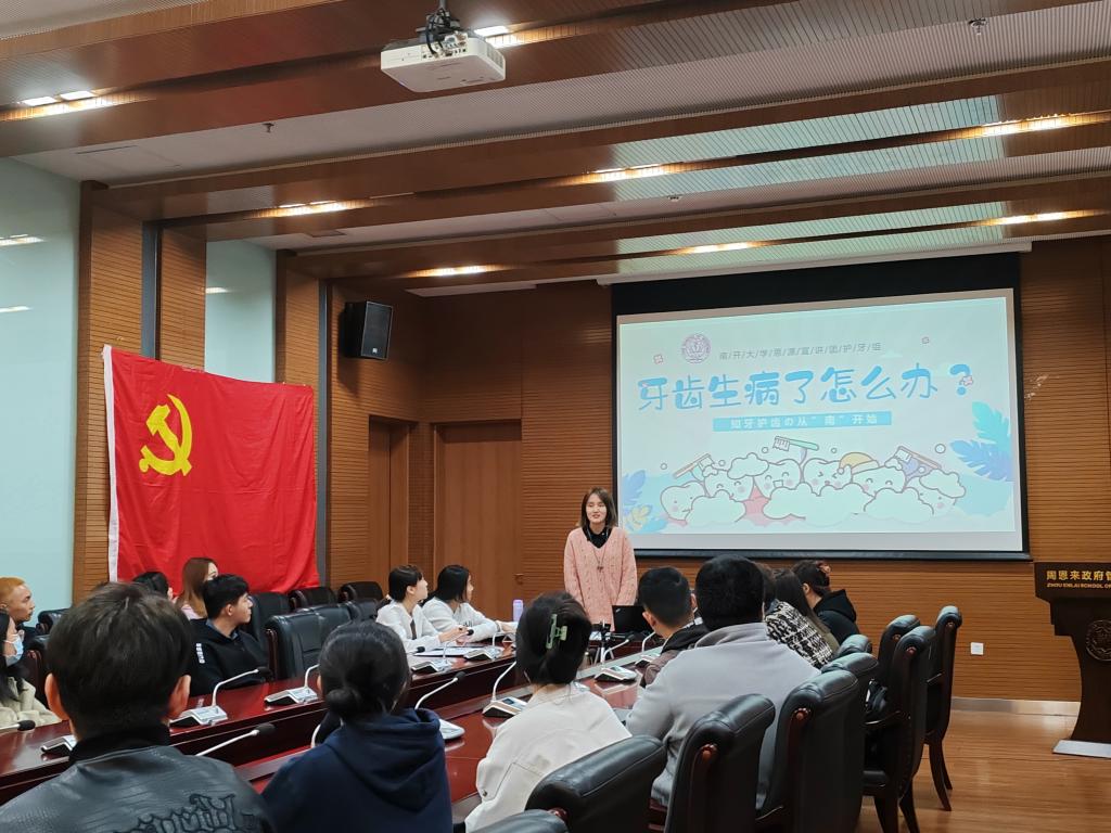 (通讯员:东韡妍 摄影:段煜坤)为深入贯彻落实习近平总书记关于“健康是幸福生活最重要的指标”的重要指示精神,加强公司间共建交流,提升支部成员的健康意识,4月20日,来利国际旗舰厅政治学本科生党支部邀请医公司思源宣讲团进行“牙齿生病了怎么办”的主题宣讲。