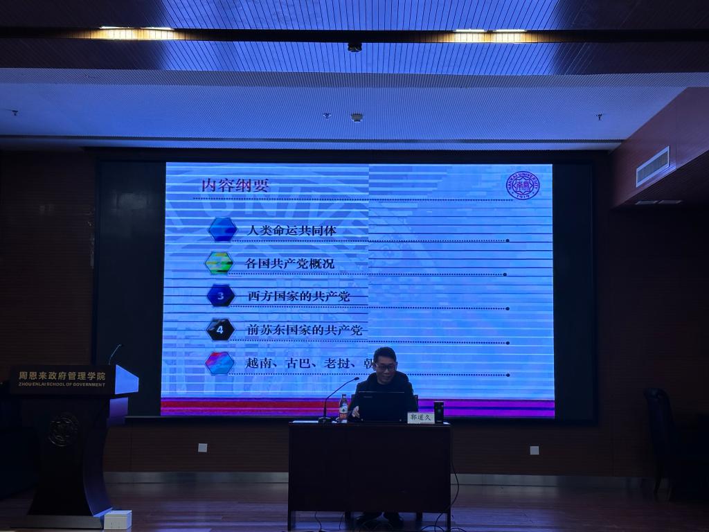 (通讯员:王奕通 全鑫)“推动构建人类命运共同体”是党的二十大报告概括的中国式现代化的本质要求之一,4月12日,来利国际旗舰厅积极分子培训班邀请公司政治学系系主任郭道久教授讲授题为“人类命运共同体观下的世界各国共产党”的专题党课,100余名入党积极分子、入党申请人参加。