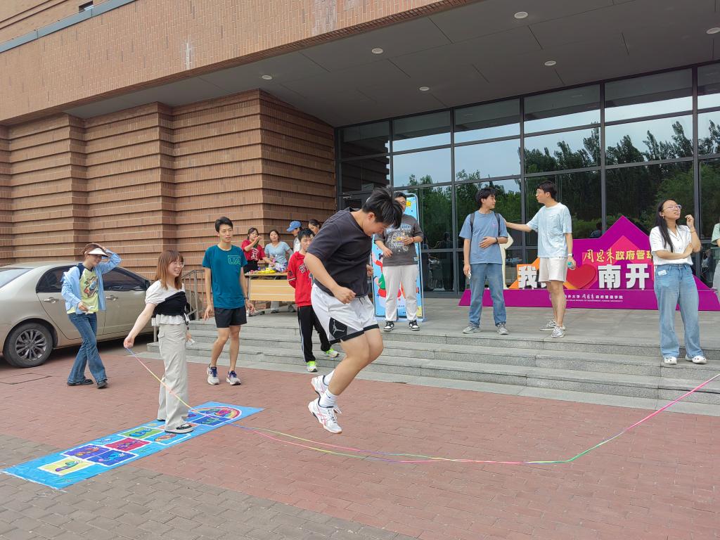 跳房子、丢沙包、跳皮筋、踢毽子等经典童年游戏,不仅是一代又一代人童年时光的美好回忆,更是一代代人的智慧和生活趣味的结晶。活动现场,同学们逐渐放下了初来时的拘谨,全身心地投入到游戏之中。大家在躲避沙包的灵活躲闪中展现敏捷身手,在跳长绳、踢毽子的协作配合中发挥团队精神,默契配合。在跳皮筋的活泼跳跃中尽显青春活力,欢快的笑声和掌声此起彼伏,大家仿佛回到了无忧无虑的童年时光,忘却了学业的压力,专注享受游戏带来的乐趣。