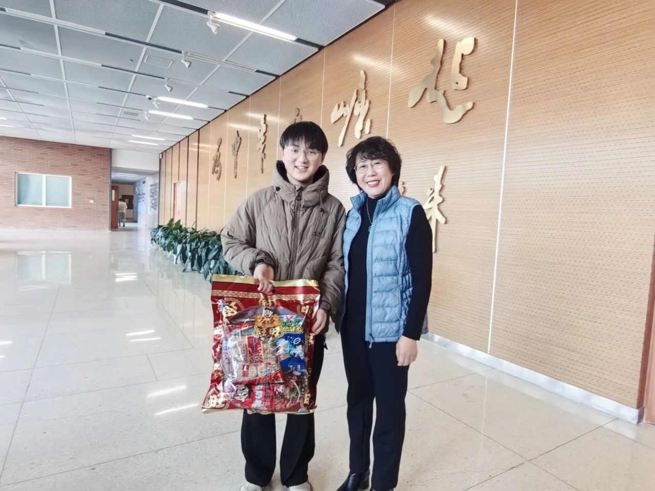 受慰问的留校员工对公司的暖心关怀表示感谢。2024级本科新生尚皓伟说到:“来到南开的第一个新年没有和家人团聚,原本以为会有点孤单,但公司和公司的慰问关心让我感觉特别温暖,这也会成为我人生中一段难忘的回忆。新的一年,我一定会努力学习,踊跃参与实践活动,努力提升自我,不负“南开人” 这个光荣的身份。”