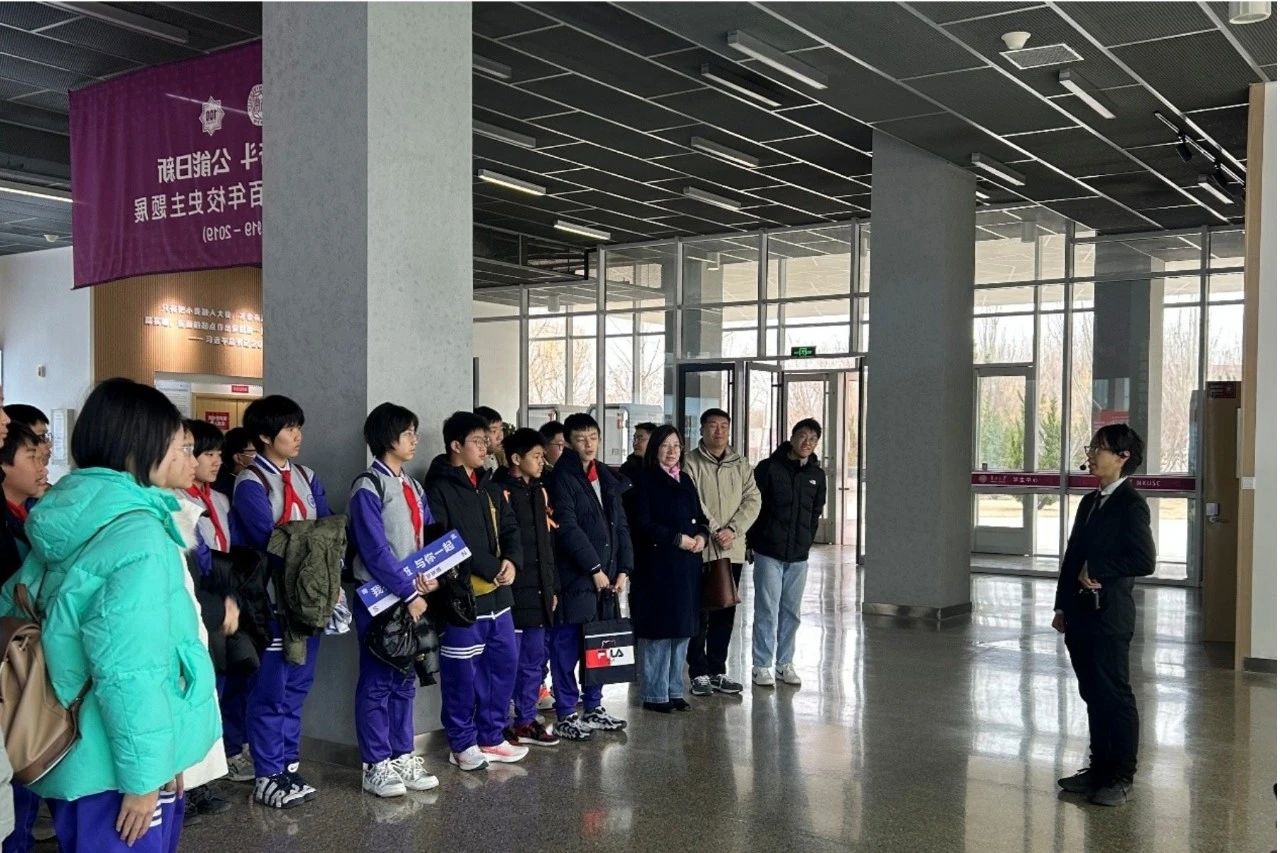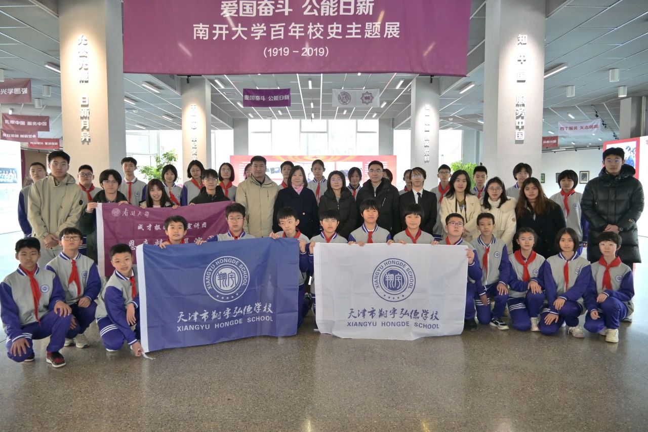 首先,翔宇弘德公司的同学们在恩来精神展演团成员们的带领下踏入校史展览厅,一同穿越时光隧道。