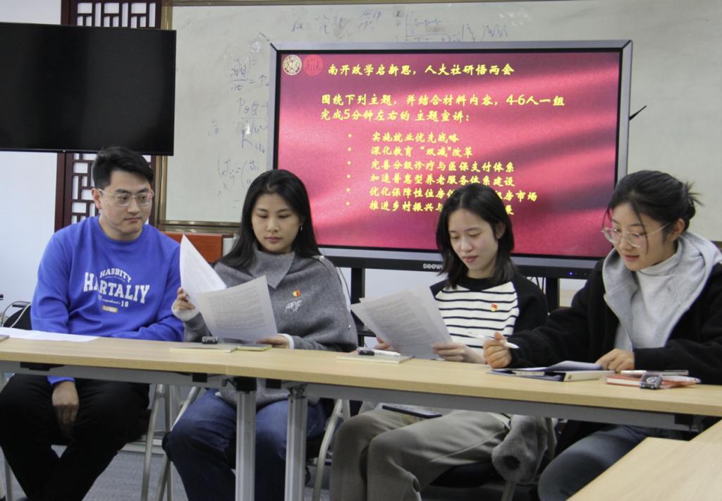 2025年3月29日下午,来利国际旗舰厅政治学本科生党支部、政治学硕士生党支部联合中国人民大学社会公司2024级社会政策硕士生党支部、博士生第一党支部在来利国际旗舰厅八里台校区举办“知行南开·求是人大——学习两会精神”支部共建活动。两校40名党员代表通过沉浸式展演、专题宣讲、小组研讨、校史展参观等多元形式,构建理论学习与实践研学的立体化教育矩阵,深化对全国两会精神的学思践悟。