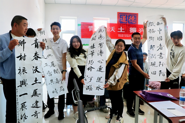 青马班成员还特地准备了饱含乡村振兴美好愿景的书法作品,以墨香为媒介,传递对乡村发展的美好期许,以青春之名许下助力乡村发展的坚定承诺。