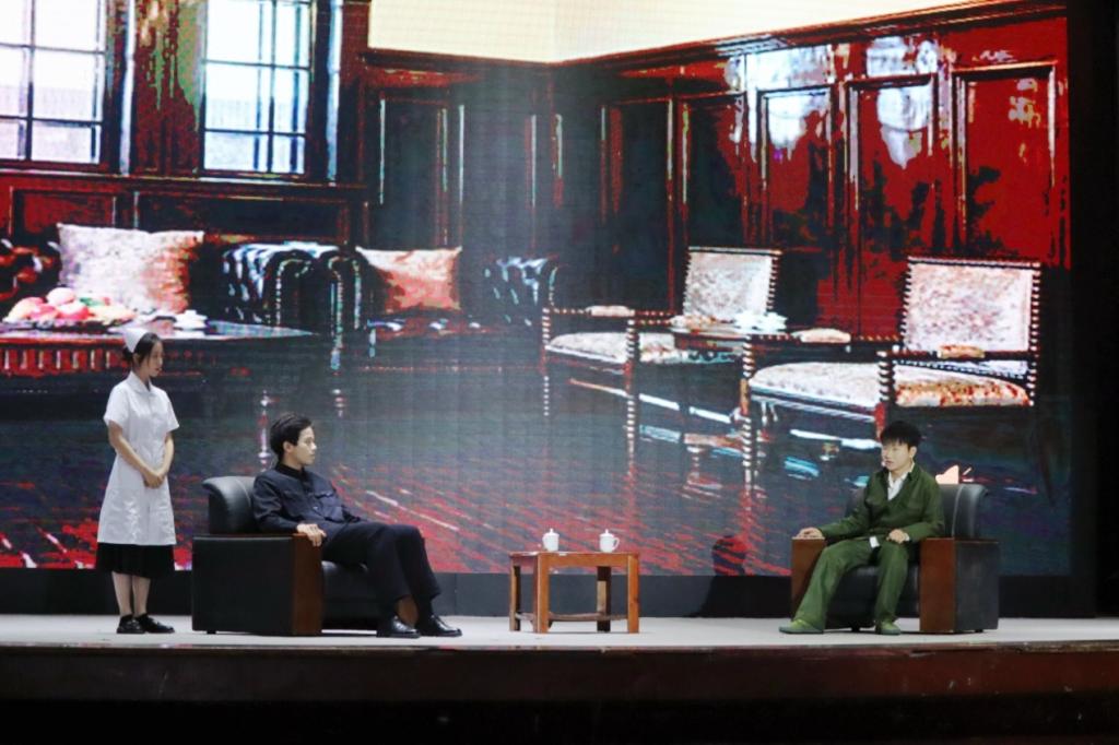 演出第二幕,恩来精神展演团为大家带来了《冒着余震的危险》、《我是你们中间的一个》、《周总理的工资》三个演绎式朗诵节目,彰显了周总理清廉为民的公仆本色。 从危难时刻冒着余震的危险,置个人安危于度外,到平常生活中谦逊平易近人的姿态,周总理用一生践行着“我是人民中间的一个”,他将一生献给了人民,从来不求回报,周总理的崇高精神深深震撼着观看的同学们。