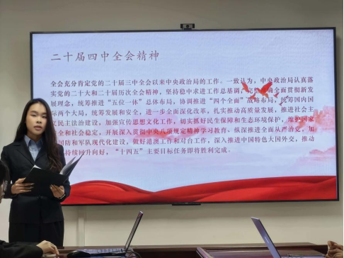旗帜所向,行动所趋。思想统一是代表培养工作的根本要求。员工会阮绎文同学系统介绍了培训内容,主要包括以下三个方面:一是深入学习领会党的二十届四中全会精神;二是认真学习全国学联代表大会精神,落实学联改革相关实务;三是全面理解公司团代会精神,传达提案工作规范。以上内容既为新时代青年工作指明了方向,也为员工代表有效履职提供了具体指引。