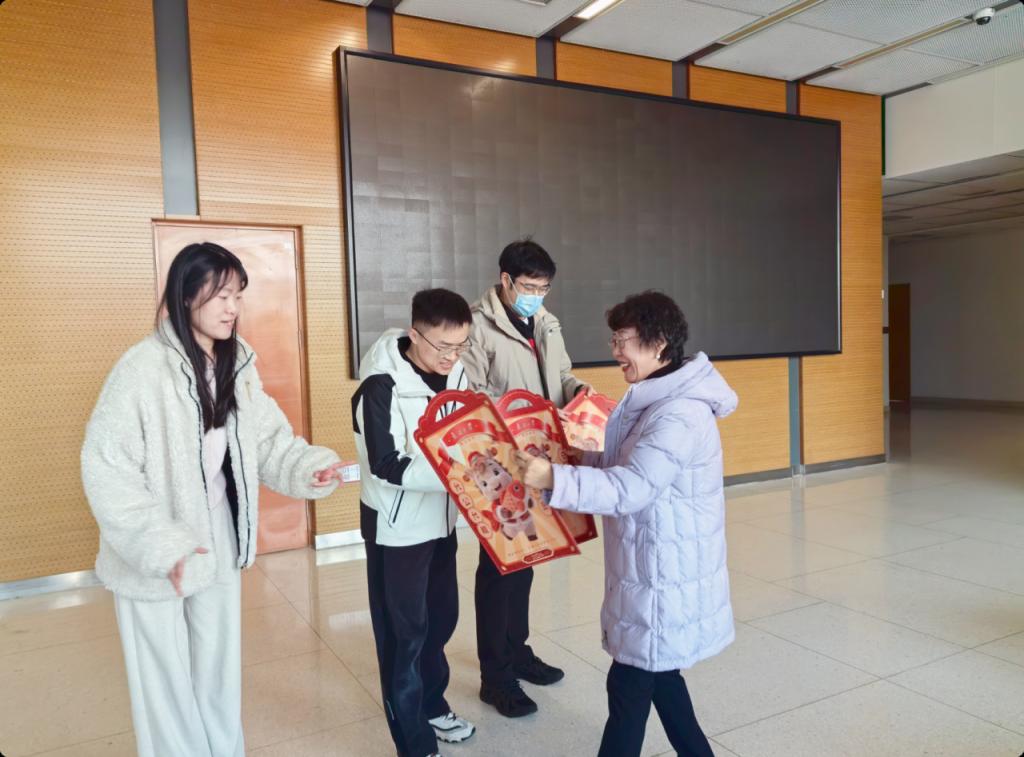 王慧与各位春节留校员工亲切交谈,细致询问每位同学留校期间的生活保障、学习规划与科研进展,特别叮嘱大家要增强安全意识,注意劳逸结合,保持通讯畅通,遇到困难及时联系公司,并表示公司始终是大家的坚强后盾,希望同学们即使在校过年,也能感受到家一般的温暖。随后,公司领导老师们一同为同学们送上了精心准备的“新春暖心礼包”,既祝愿大家度过一个祥和温馨的新春假期,也蕴含了对同学们学业进步、健康平安的美好祝愿。