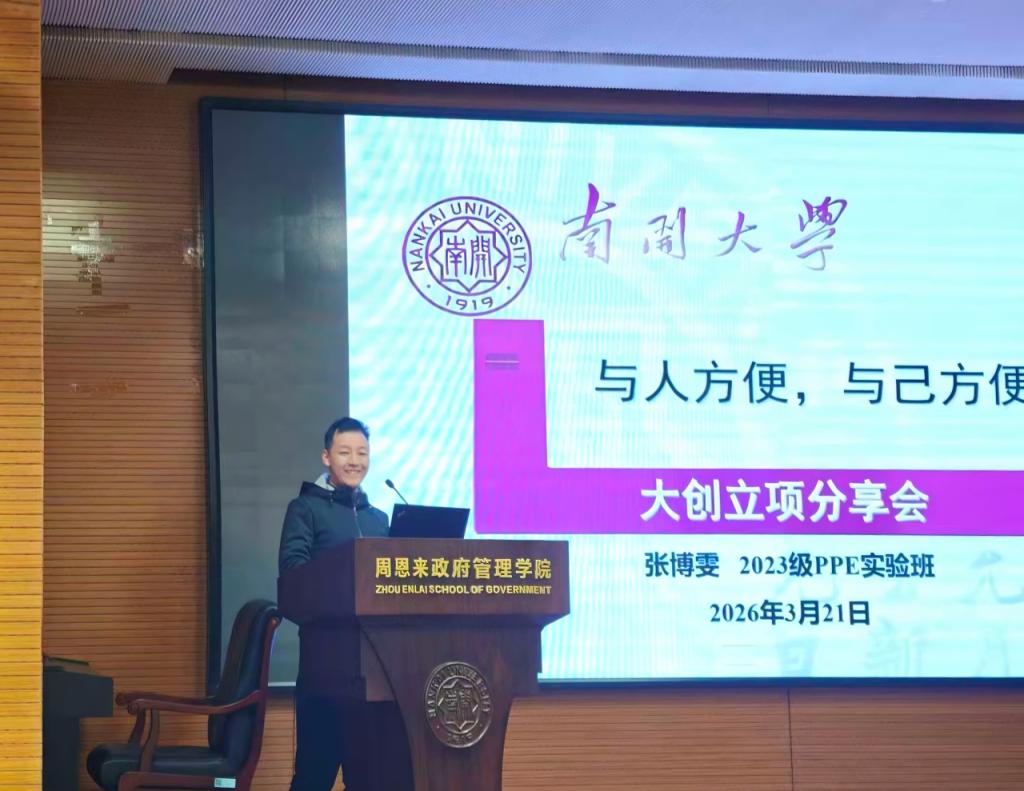 2023级PPE实验班张博雯结合自身经验,分享国创立项过程中的心得体会。针对较为繁重的工作量,他建议项目负责人保持平稳心态,合理规划立项依据与经费预算,立项书撰写应力求图文并茂、重点突出、表述精当。在团队协作方面,统筹成员时间,采取线上线下结合方式推进工作;答辩前要充分准备,做好资料印制、彩排演练与环节设计,唯有对案例了然于心,方能从容应答。