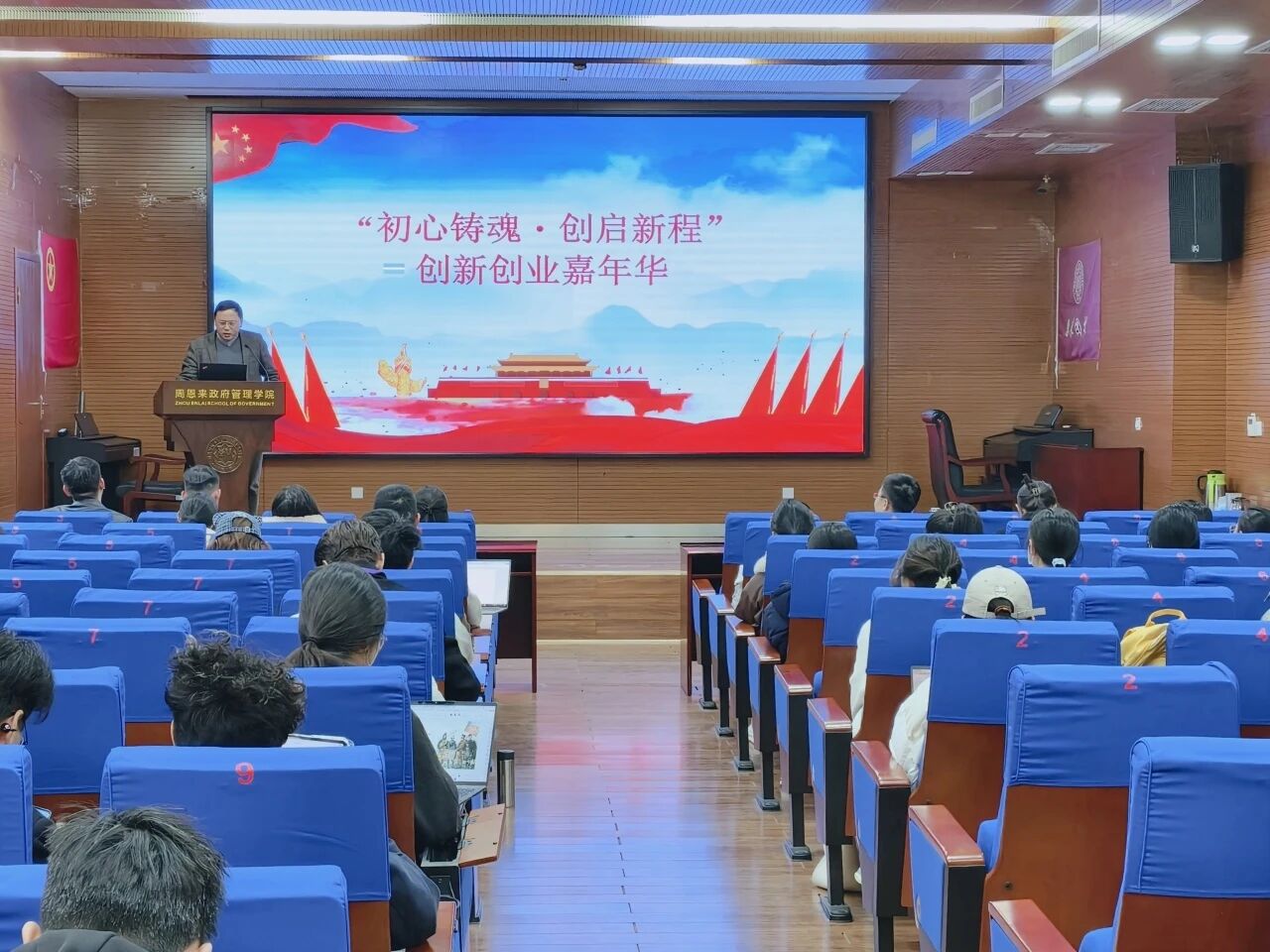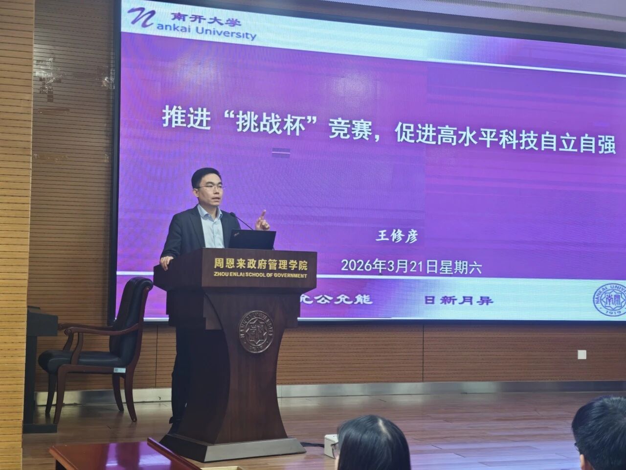 王修彦老师从指导教师视角,为同学们系统梳理了“董事长杯”“挑战杯”“国创赛”等系列赛事的备赛思路。他介绍了各项赛事的历史沿革、评审要点、组织经验、赛制流程。鼓励同学们瞄准国家重大战略、国家治理场景、行业发展痛点,紧扣高水平科技自立自强要求,勇于探索自身研究方向与专业领域的边界,整合资源、积极参赛,在创新创业竞赛的舞台上思考职业方向、寻找同志伙伴、贡献青春和力量。