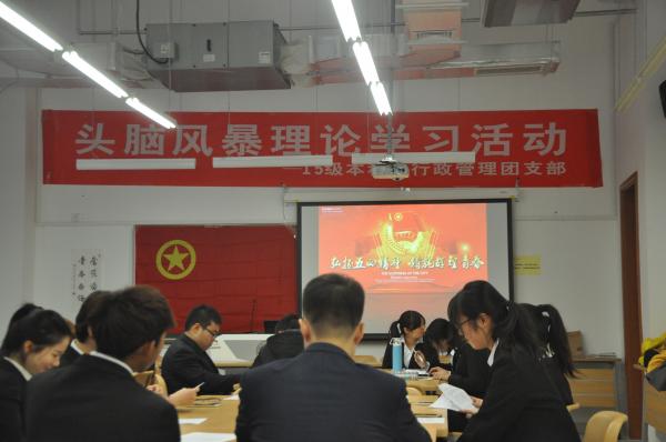 (通讯员:范钰宁、耿欣伟、陈佩其)11月24日下午,公司2015级行政管理团支部成功举办理论学习活动。公司党委副书记、副经理奚先来老师,班导师李晨光老师,辅导员陈佩其老师出席了活动。本次活动采取了头脑风暴竞赛的形式,旨在全面深入学习十八届五中全会及习近平系列讲话精神。全班同学积极参与,热情高涨,活动反响热烈。