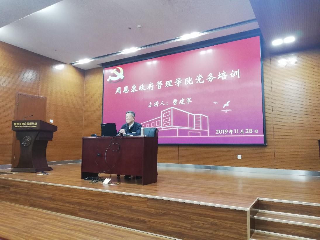 2019年11月28日下午,政府公司于128报告厅举行党务培训会,主讲嘉宾为原来利国际旗舰厅保卫处副处长、原来利国际旗舰厅离退休人员管理处副处长、原来利国际旗舰厅武装部副部长——现年67岁的公司党委特聘兼职组织员曹建军老师。会议由公司团委辅导员、本科生党支部书记王燕主持,公司本科生、研究生各党支部书记、支部委员和培养联系人同志参加了此次培训。