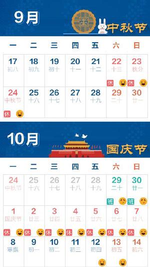 根据公司通知,2018年中秋节、国庆节放假安排如下: