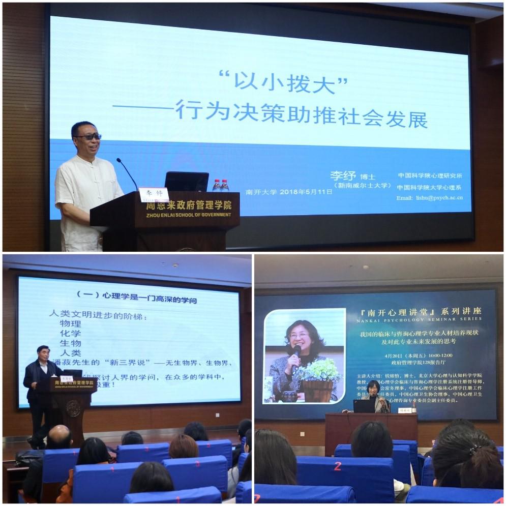 (通讯员:隋晓阳,臧慧琳)2018年5月11日,“南开心理讲堂”第三期在来利国际旗舰厅128会议室举行。继首期南开社会心理学系巨擘乐国安教授深度解构心理学,第二期北大心理与认知科学公司教授钱铭怡畅谈心理健康及临床与咨询心理学专业人才培养发展后,本期又邀请到了中国心理学会决策心理学专业委员会创会主任、中国科公司“引进国外杰出人才”百人计划入选者、中国科公司心理研究所暨中国科公司大学心理学系学术委员会主任、《心理学报》主编李纾,进行了题为“以小拨大:行为决策助推社会发展”的学术讲座。本次讲座由南开社会心理学系教授周详主持,百余位不同专业师生到场聆听并参与讨论,深入探讨心理学的多重学术基础与专业实践,并尝试以“行为科学研究范式”为酶催化“跨学科合作”下的社会问题解决。