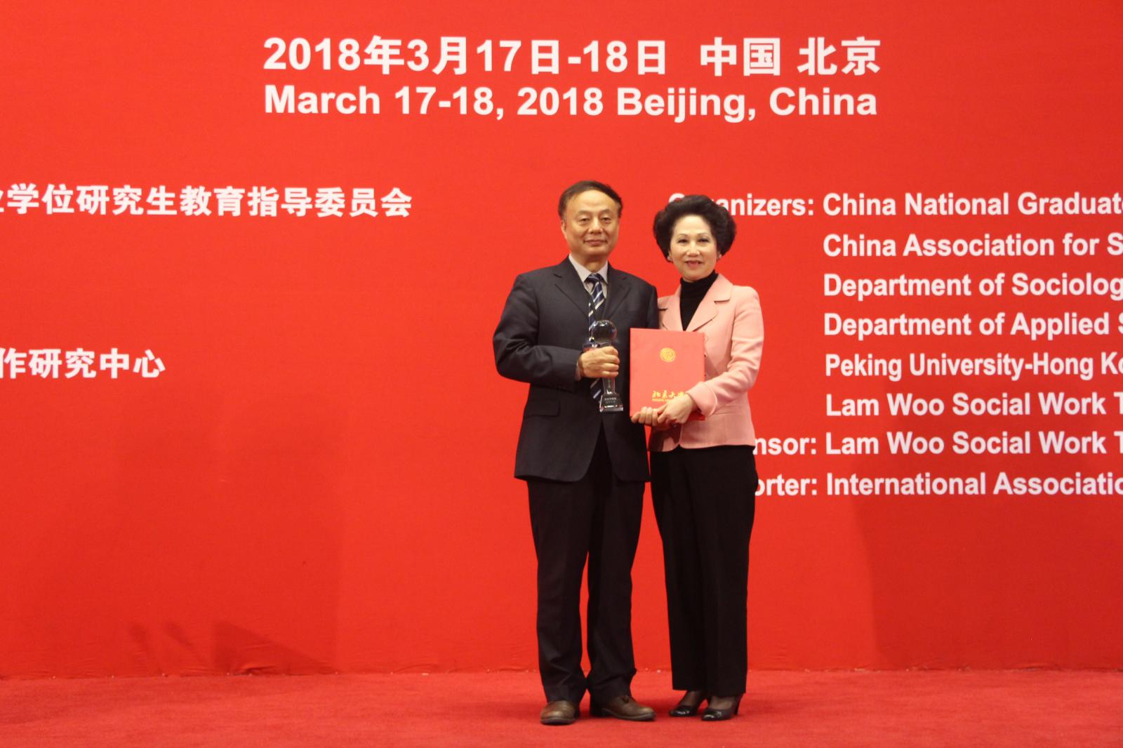 政府部门负责人、国内知名专家、林护基金会代表以及部分社会工作院校师生近300人参加了颁奖仪式及研讨会。颁奖典礼上,香港理工大学副董事长阮曾媛琪教授宣读第六届林护杰出社会工作奖获奖名单,并为关信平教授颁发获奖证书和奖杯。