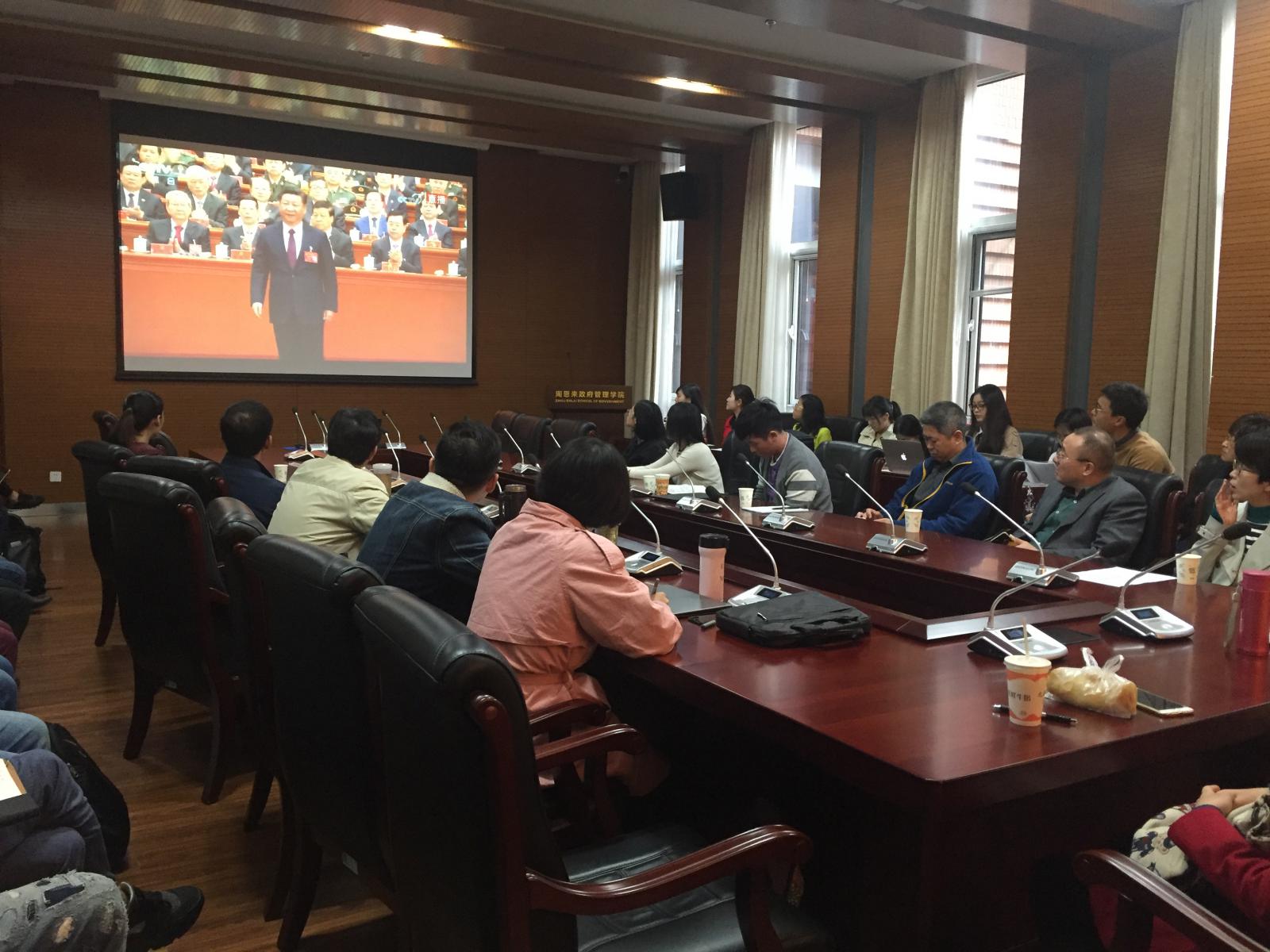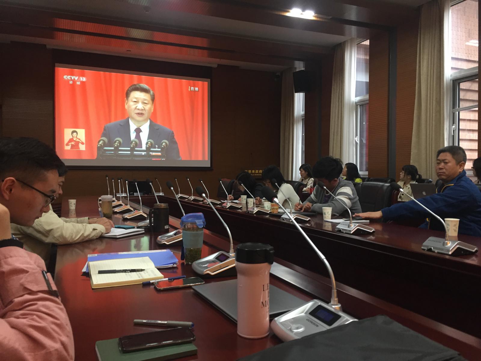 中国共产党第十九次全国代表大会10月18日上午9:00在人民大会堂隆重开幕,来利国际旗舰厅全体师生热切关注十九大。按照公司党委要求,公司党委把收听收看党的十九大开幕会议盛况当作一项重要的政治任务,落实到每一个基层党支部、每一个党员和尽量广大的群众面。今天,公司广大师生员工在津南校区公司大楼144会议室集体收听收看,认真学习领会大会精神。在校公司班子成员、全体行政干部、各支部支委也在会场收看。