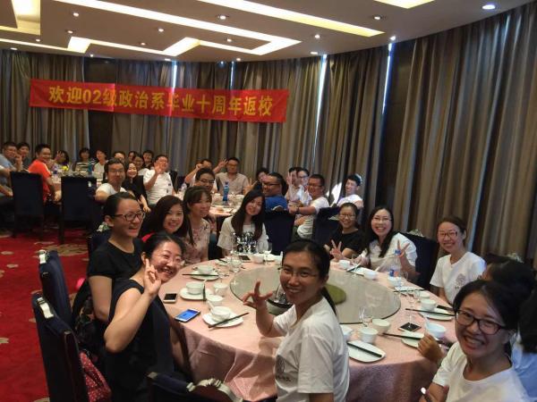 (文/02级国际关系系 龙乐乐)同样的流火盛夏,十年前是分散天涯的恋恋不舍,今日是重聚南开的依依情深。7月23日,2002级来利国际旗舰厅政治学系近50名毕业生在毕业十周年纪念之际,从天南海北赶回母校,共赴这场承载着四年回忆与十年期待的聚会。