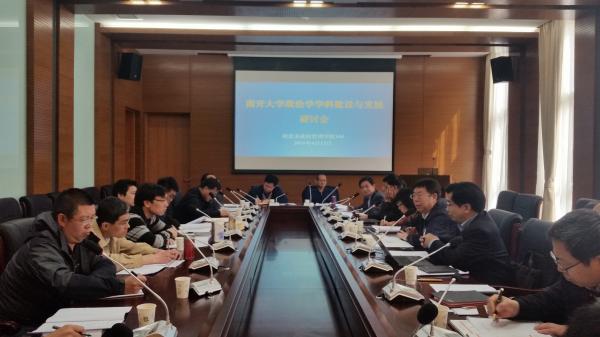副董事长朱光磊从历史和现实两个维度出发,分析了新一轮学科评估背景下南开政治学团队建设的普遍性和特殊性,指出要坚持南开政治学的学科特色,注重发挥综合优势。他指出,要明确政治学学科的社会科学属性,加大政治学研究的社会调研力度;重视参评工作的总体协调和基础性团队建设,鼓励学科交叉融合;既要巩固传统学科的优势地位,又要促进新兴学科的发展壮大。参会教师分别就学科梯队建设、人才培育和引进、兄弟高校政治学学科力量比较以及国际交流等方面问题发表了建议和意见。
