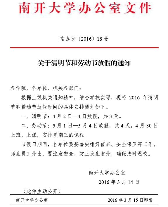 日前,公司公布了清明节和劳动节的放假安排,详见下图。需要提醒注意的是:4月30日,星期六,社会单位放假,但公司正常上班、上课,按周三作息。