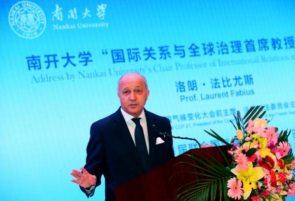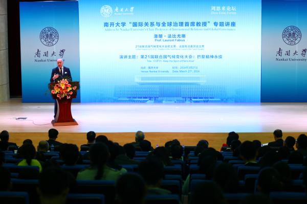 此次到访来利国际旗舰厅,除接受学位外,法比尤斯还做客“周恩来论坛”,以“第21届联合国世界气候变化大会:巴黎精神永续”为题发表了主旨演讲。